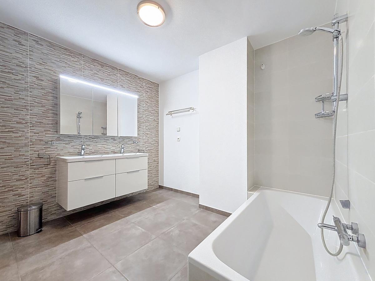 Situé à Marcq, aux portes de la Ville d’Enghien, ce très beau duplex fraîchement repeint vous séduira par ses nombreux atouts. Situé au 2ème étage d’une Résidence construite en 2016, il offre, en son 1er niveau, un grand hall d’entrée (avec un espace permettant d’accueillir aisément une armoire/vestiaire), un WC, un spacieux séjour avec cuisine ouverte et ilot central, et une buanderie. Le 2ème niveau est doté d’un hall de nuit, de 2 chambres, d’une salle de bains, et d’un WC. Un balcon privé (avec prise et luminaire extérieurs) et un jardin commun derrière l’immeuble viennent compléter ce beau programme. Bonne performance énergétique (PEB en B), chauffage par le sol, double vitrage, système de ventilation, luminaires installés … bref, un nid douillet tout confort ! Le bien jouit de la proximité des commodités : gare d’Enghien à +/-2.7km (train direct vers Bruxelles en +/-20min), autoroute E429 à +/-1km (Bruxelles, Tournai, Lille), arrêt de bus à quelques mètres, nombreuses écoles et commerces à quelques minutes à pied. Loyer : 950€/mois + provision de 200€/mois comprenant les charges communes (nettoyage des communs, entretien et réparation courantes, entretien jardin et abords, frais d’ascenseur, électricité des communs, eau des communs), le chauffage de l’appartement, et le chauffage de l’eau de l’appartement. Possibilité de louer en sus un emplacement de parking intérieur privatif au sous-sol de la résidence (50€/mois).