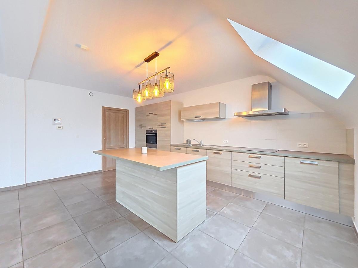 Situé à Marcq, aux portes de la Ville d’Enghien, ce très beau duplex fraîchement repeint vous séduira par ses nombreux atouts. Situé au 2ème étage d’une Résidence construite en 2016, il offre, en son 1er niveau, un grand hall d’entrée (avec un espace permettant d’accueillir aisément une armoire/vestiaire), un WC, un spacieux séjour avec cuisine ouverte et ilot central, et une buanderie. Le 2ème niveau est doté d’un hall de nuit, de 2 chambres, d’une salle de bains, et d’un WC. Un balcon privé (avec prise et luminaire extérieurs) et un jardin commun derrière l’immeuble viennent compléter ce beau programme. Bonne performance énergétique (PEB en B), chauffage par le sol, double vitrage, système de ventilation, luminaires installés … bref, un nid douillet tout confort ! Le bien jouit de la proximité des commodités : gare d’Enghien à +/-2.7km (train direct vers Bruxelles en +/-20min), autoroute E429 à +/-1km (Bruxelles, Tournai, Lille), arrêt de bus à quelques mètres, nombreuses écoles et commerces à quelques minutes à pied. Loyer : 950€/mois + provision de 200€/mois comprenant les charges communes (nettoyage des communs, entretien et réparation courantes, entretien jardin et abords, frais d’ascenseur, électricité des communs, eau des communs), le chauffage de l’appartement, et le chauffage de l’eau de l’appartement. Possibilité de louer en sus un emplacement de parking intérieur privatif au sous-sol de la résidence (50€/mois).