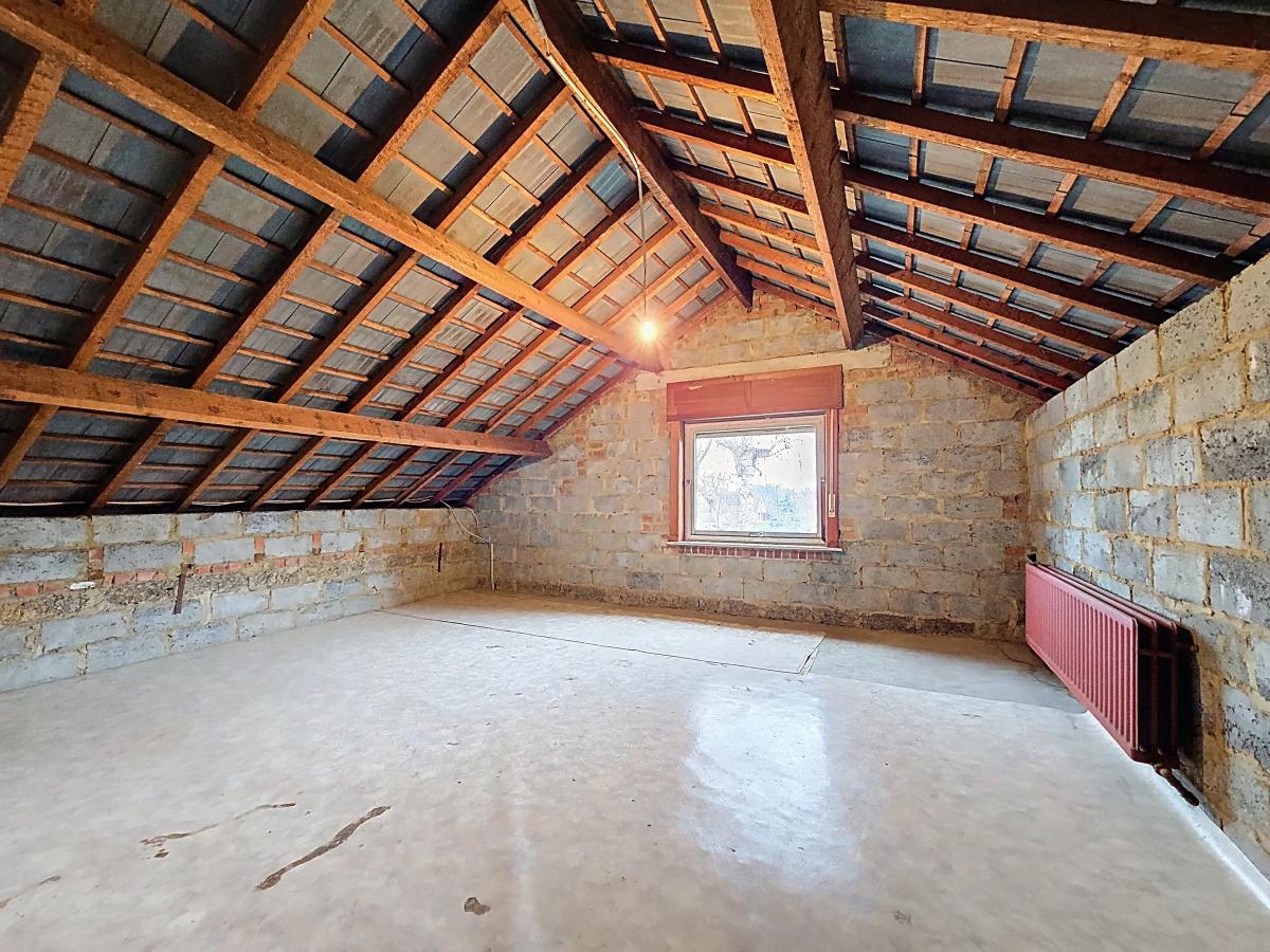 Grenier : -pièce centrale de +/-26m² -pièce secondaire de +/-37m² -partie réhaussée de +/-32m²